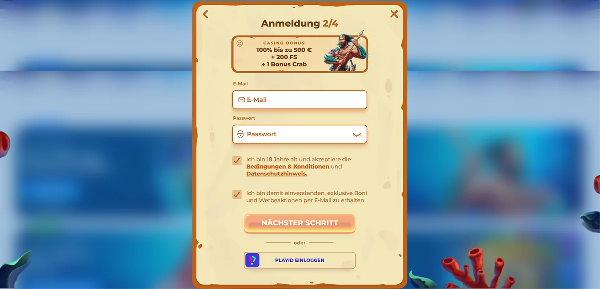Nach der erfolgreichen Registrierung können Sie sofort Ihre erste Einzahlung vornehmen. Die Mindesteinzahlung beträgt nur 10€.