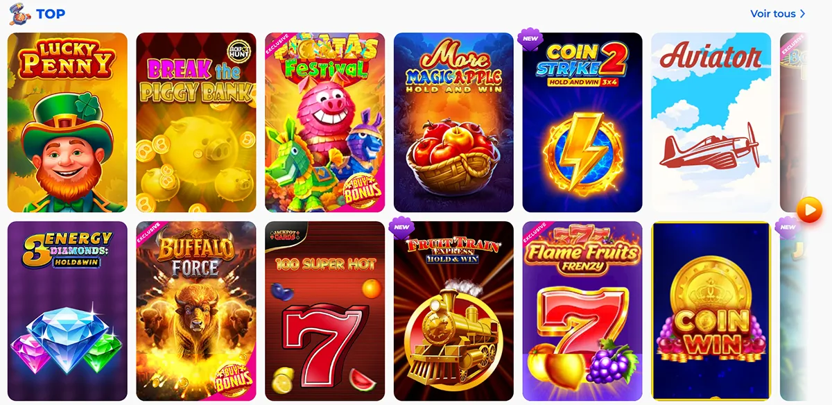 Nous proposons plus de 2 000 jeux développés par plus de 40 fournisseurs certifiés. Notre catalogue comprend des machines à sous modernes, des jeux de table classiques et une expérience de casino en direct immersive.