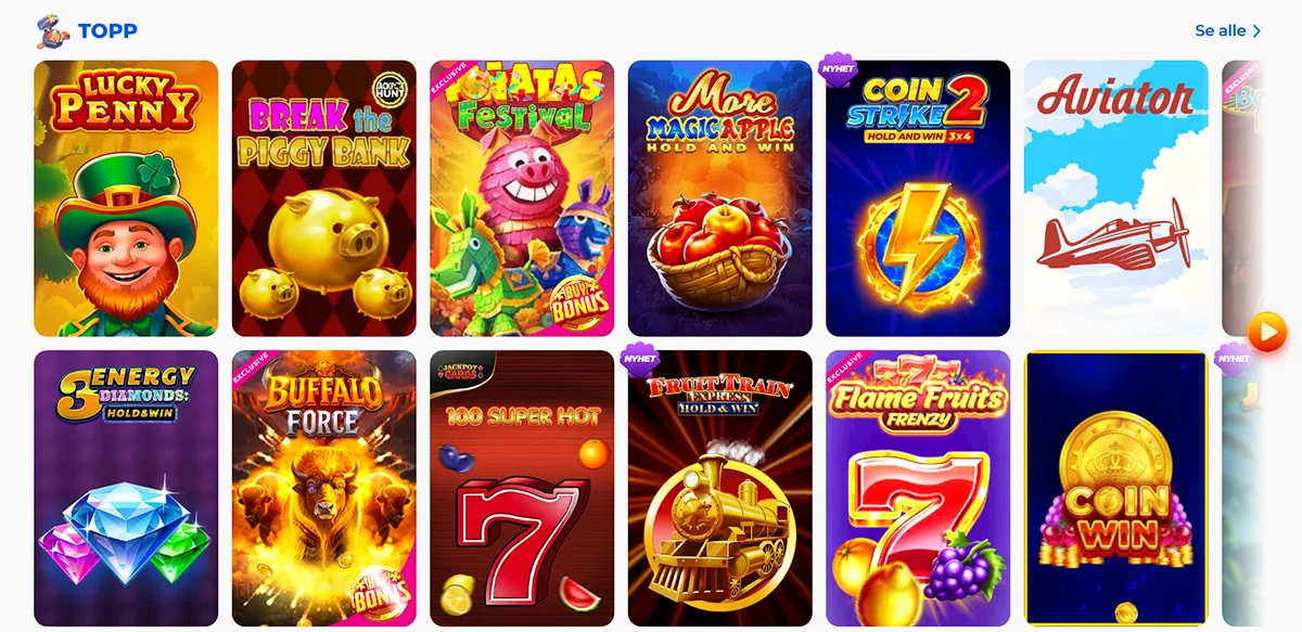Scratch cards og bingo gir deg alternative spillmuligheter. Crash games som Aviator tilbyr moderne, hurtige spillopplevelser med umiddelbare resultater.