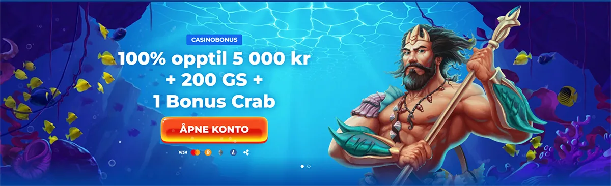 For kryptovaluta-entusiaster stĂžtter vi Bitcoin, Ethereum, Litecoin, Ripple, Tether, Dogecoin og Bitcoin Cash. Minimum innskudd er âŹ10 for alle betalingsmetoder.