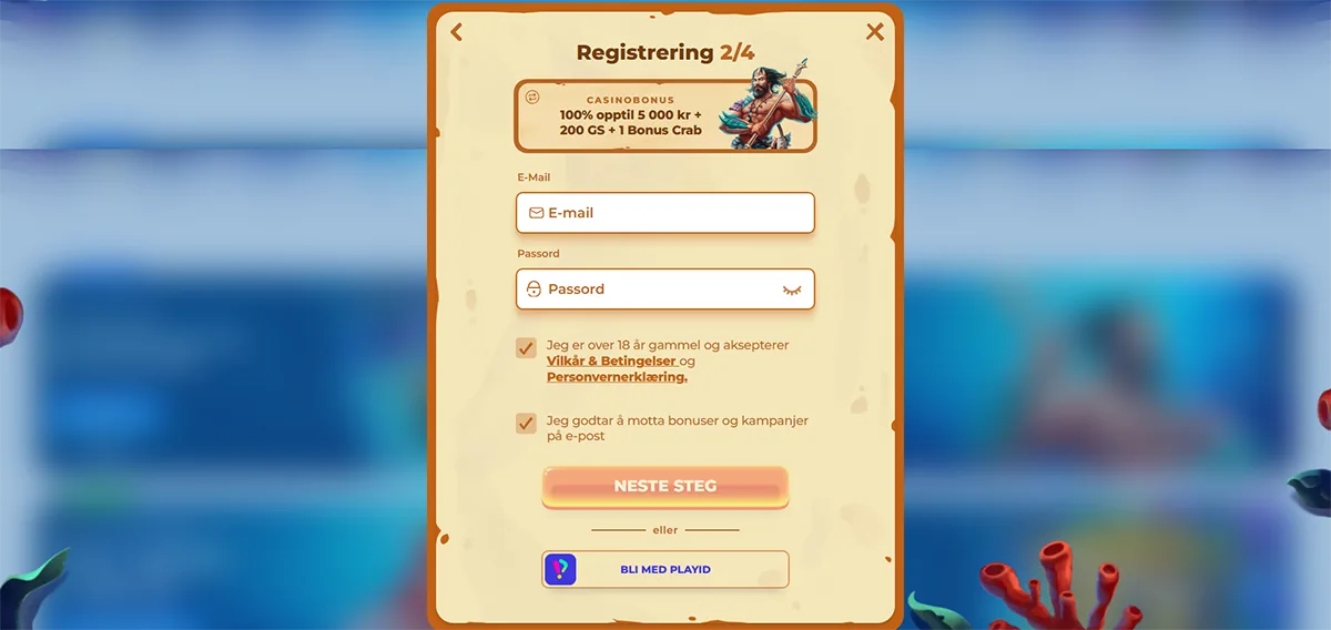 Under registreringsprosessen mÄ du oppgi grunnleggende personlig informasjon. Dette inkluderer ditt fulle navn, fÞdselsdato og kontaktinformasjon som e-postadresse og telefonnummer.